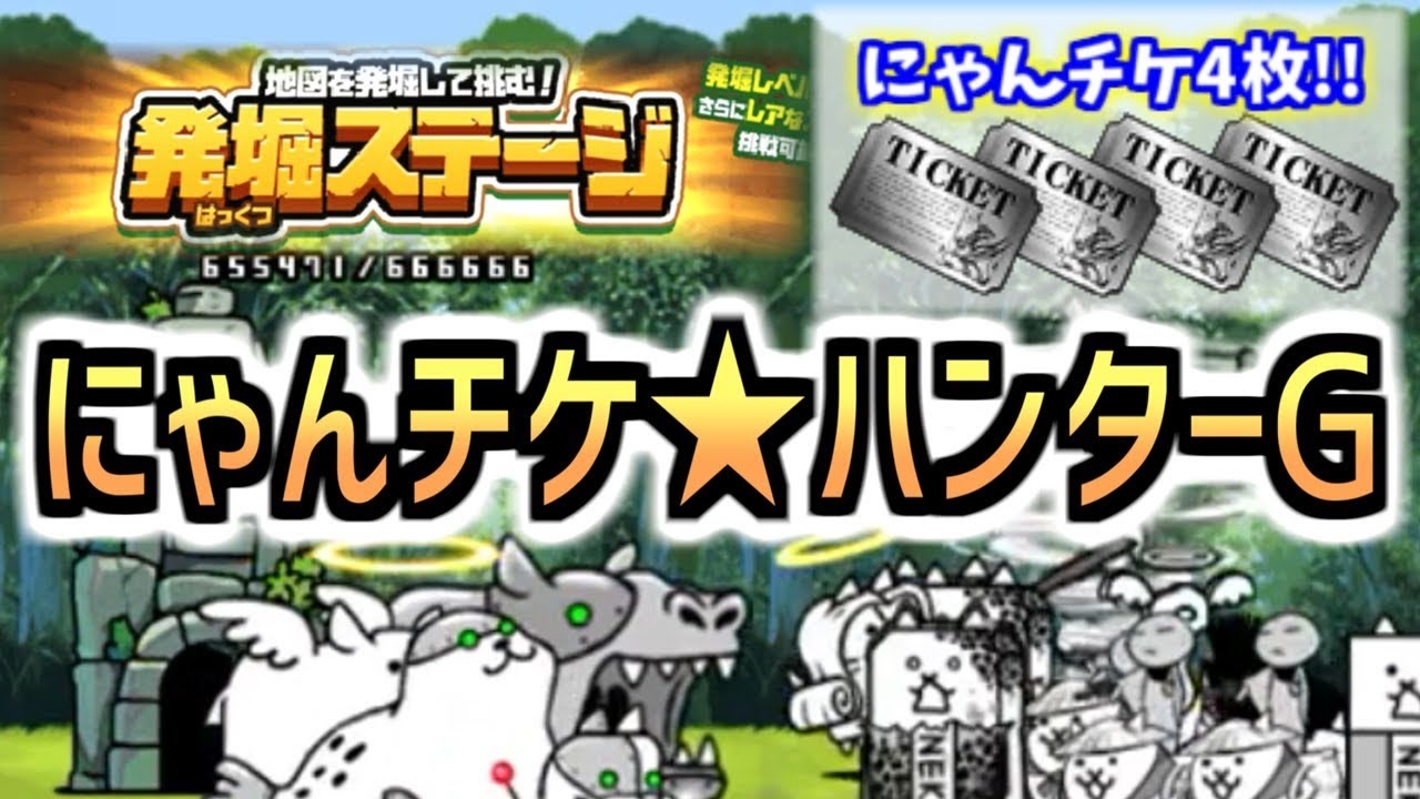 ニャン チケ ハンター。 随時更新にゃんチケチャンス攻略 いつやるか(時間帯)と入手確率について。随時更新・・・予定。 にゃんこ発掘ステージの地図 報酬と入手方法 ️ 狩技には、「武器種に関係なく使えるもの」と、「14武器専用のもの」があり、14武器種専用の狩技は 条件を にゃんこ大戦争の日々 (Day of Battle cats) 小学校6年生の孫に教えてもらってにゃんこ大戦争をやっているおじいちゃんのブログです。 発掘ステージ にゃんチケ★ハンター モンスターのにゃんこ大戦争モンスターの巣窟 極ムズ にゃんチケ★ハンターG 発掘ステージ 😋 Contents• 大抵は終盤のステージが相場となりますが苦手なステージに対して使用していくと良いでしょう。 探検時間を長く設定すればそれだけ手に入る確率が高まり